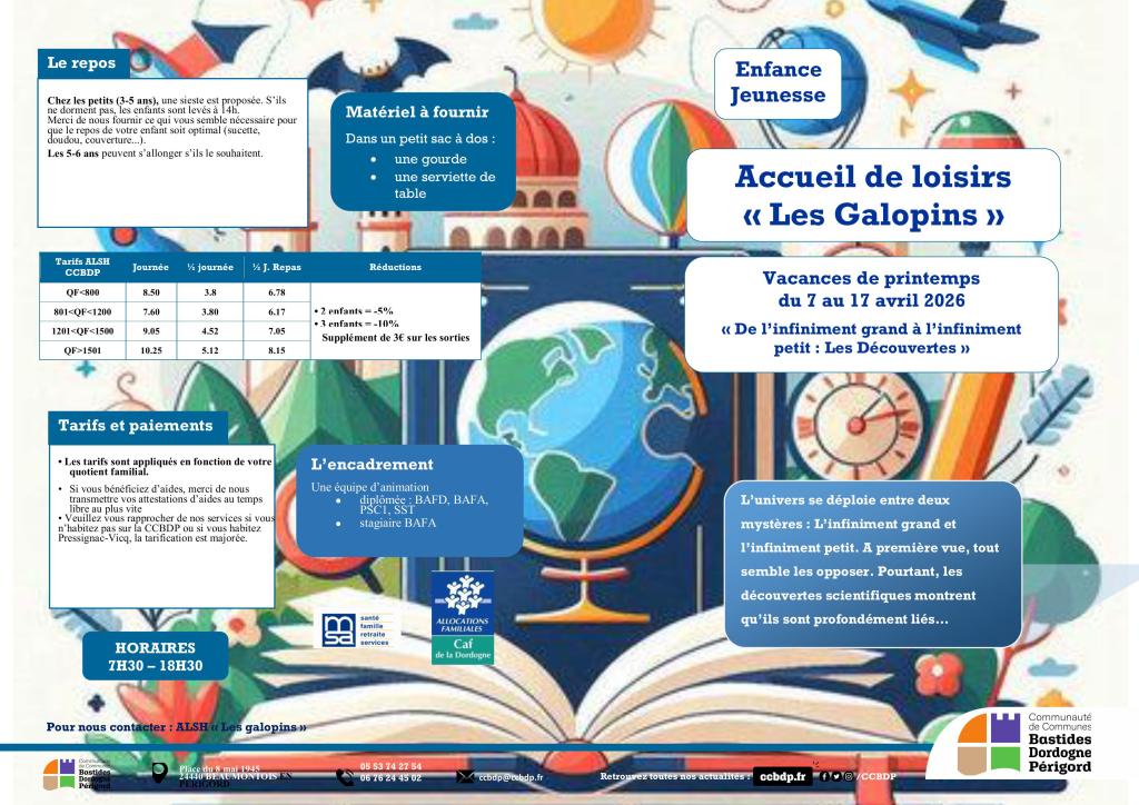 Programme du centre de loisirs Les Galopins pour les vacances de printemps :